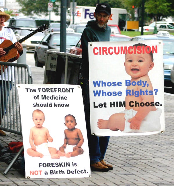 A protest against non-therapeutic infant circumcision in connection with the annual meeting of the American Academy of Pediatrics at the Washington Convention Center (Wikipedia)